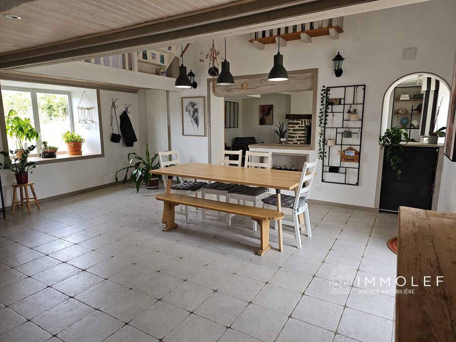 À l'étage, vous trouverez trois chambres spacieuses ainsi qu'une salle d'eau. La maison est également dotée d'une grande terrasse exposée sud pour profiter du soleil, et un espace couvert, parfait pour les soirées d'été.
