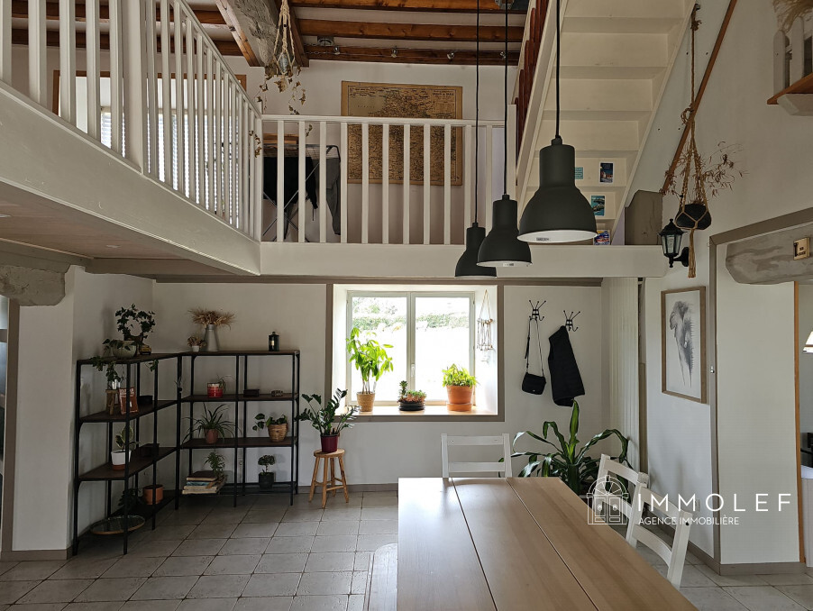 Au rez-de-chaussée, un espace de vie lumineux traversant de plus de 60 m² vous attend. Son grand volume, accentué par une belle mezzanine, crée une atmosphère chaleureuse et conviviale, idéale pour les moments en famille ou entre amis. Une cuisine aménagée et équipée de 17 m2 est séparée et offre un accès à la terrasse.